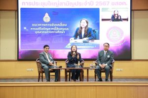 วันที่ 2 สิงหาคม 2568 นางเกศทิพย์ ศุภวานิช รองเลขาธิการคณะกรรมการการศึกษาขั้นพื้นฐาน (รองเลขาธิการ กพฐ.) ร่วมเวทีเสวนา “แก้ไขปัญหาหนี้สินของข้าราชการ (ครู) ที่รัฐบาลอยากแก้ไข : จะสำเร็จได้ด้วยระบบสหกรณ์” จัดโดย ชุมนุมสหกรณ์ออมทรัพย์ครูไทย จำกัด (ชสอค.) โดยมี นายปรีดา บุญเพลิง เป็นประธานเปิดงาน ร่วมด้วย ดร.ดิษกุล เกษมสวัสดิ์ รองเลขาธิการ สกสค. มอบนโยบายขับเคลื่อน มีผู้ร่วมวงเสวนา ได้แก่ นางเกศทิพย์ ศุภวานิช รองเลขาธิการ กพฐ. นายอุทัย ศรีเทพ ประธานกรรมการ ชสอค. ดำเนินรายการโดย นายสำเริง ทองมอญ กรรมการและเลขานุการ ชสอค. ณ โรงแรมเอเชีย แอร์พอร์ต จังหวัดปทุมธานี