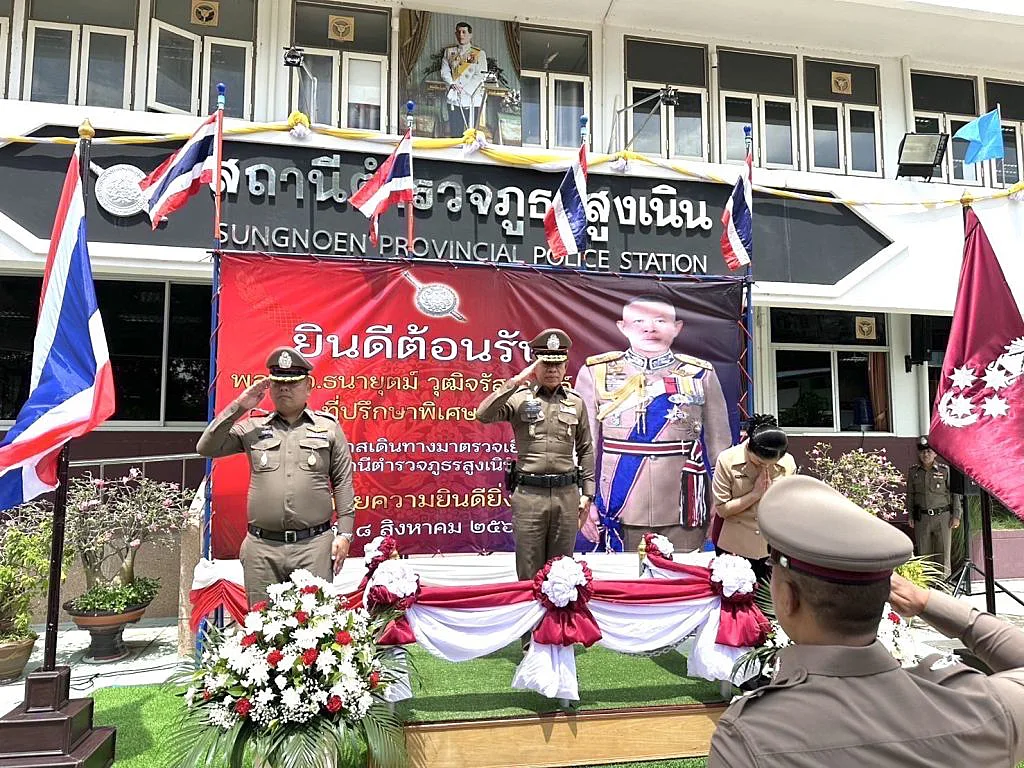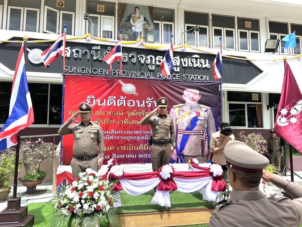 เมื่อเวลา 13.30 น. วันที่ 8 สิงหาคม 2568 พล.ต.อ.ธนายุตม์ วุฒิจรัสธำรงค์ ที่ปรึกษาพิเศษ ตร. และคุณนภัสนันท์ วุฒิจรัสธำรงค์ อุปนายกสมาคมแม่บ้านตำรวจ เดินทางไปตรวจเยี่ยมบำรุงขวัญและอำลาข้าราชการตำรวจ สภ.สูงเนิน จ.นครราชสีมา ซึ่งเป็นหน่วยที่ พล.ต.อ.ธนายุตม์ เคยดำรงตำแหน่งผู้กำกับการมาก่อน