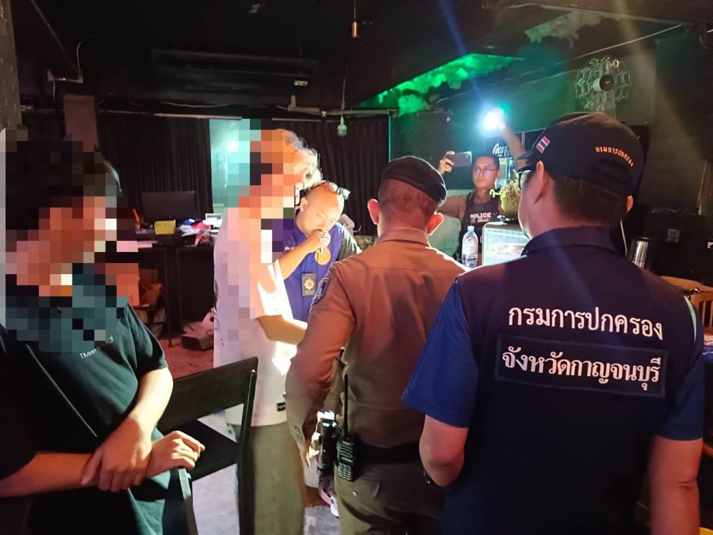 เมื่อเวลา 23.10 น. วันที่ 8 สิงหาคม 2568 ภายใต้การอำนวยการของ นายอธิสรรค์ อินทร์ตรา ผู้ว่าราชการจังหวัดกาญจนบุรี, นายวุฒิพงษ์ สุภัควนิช รองผู้ว่าราชการจังหวัด, นายฑรัท เหลืองสอาด ปลัดจังหวัด และ นายสมบูรณ์ แผนสมบูรณ์ นายอำเภอเมืองกาญจนบุรี ได้สั่งการให้ ว่าที่ร้อยตรี ธนายุทธ พินิจมนตรี ปลัดฝ่ายความมั่นคงอำเภอเมืองกาญจนบุรี นำกำลัง อส. และตำรวจหลายหน่วย สนธิกำลังบุกตรวจสถานบันเทิงแห่งหนึ่งแถว ตลาดเจเจ ต.บ้านเหนือ อ.เมืองกาญจนบุรี