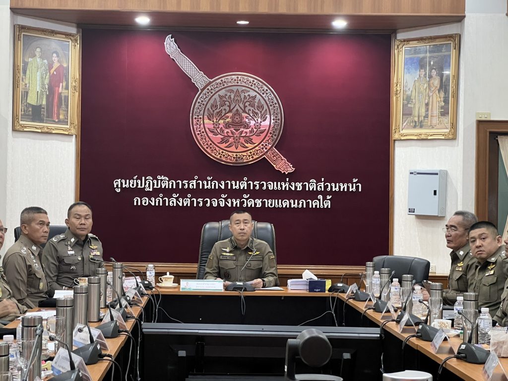 วันที่ (13 สิงหาคม 2568) เวลา 13.30 น. พล.ต.ท.สำราญ นวลมา ผู้ช่วยผู้บัญชาการตำรวจแห่งชาติ (ผู้ช่วย ผบ.ตร.) ในฐานะผู้อำนวยการศูนย์ปฏิบัติการตำรวจจังหวัดชายแดนภาคใต้ (ศปก.ตร.สน.) เดินทางตรวจเยี่ยมและประชุมมอบนโยบายแก่ผู้บังคับบัญชาในพื้นที่ เพื่อเสริมสร้างความพร้อมด้านการปฏิบัติราชการ และการดูแลสวัสดิภาพกำลังพล โดยมี พล.ต.ท.ปิยะวัฒน์ เฉลิมศรี ผู้บัญชาการตำรวจภูธรภาค 9 (ผบช.ภ.9) , พล.ต.ต.กฤษฎา แก้วจันดี รอง ผบช.ภ.9 รรท.ผบก.ภ.จว.นราธิวาส , พล.ต.ต.วัลลพ จำนงค์อาษา รอง ผบช.ภ.9 , พล.ต.ต.ธเรศ แก้วละเอียด รอง ผบช.ภ.9 , พล.ต.ต.นพศิลป์ พูลสวัสดิ์ รองผู้บัญชาการตำรวจนครบาล , พล.ต.ต.ณฐกรญ์ กาญจนาภรณ์ ผบก.ภ.จว.ยะลา , พล.ต.ต.สันทัศน์ เชื้อพุฒตาล ผบก.ภ.จว.ปัตตานี พร้อมผู้แทนหน่วยงานที่เกี่ยวข้อง เข้าร่วมประชุม