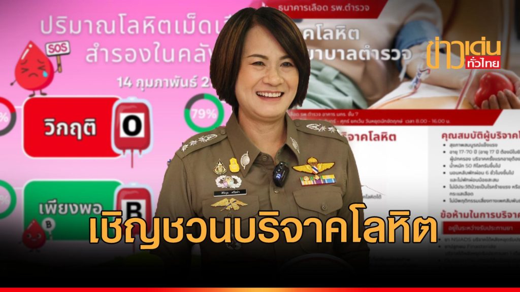 โฆษก รพ.ตร. เชิญชวนบริจาคโลหิต เนื่องจากปริมาณโลหิต กรุ๊ป โอ อยู่ในภาวะวิกฤต
