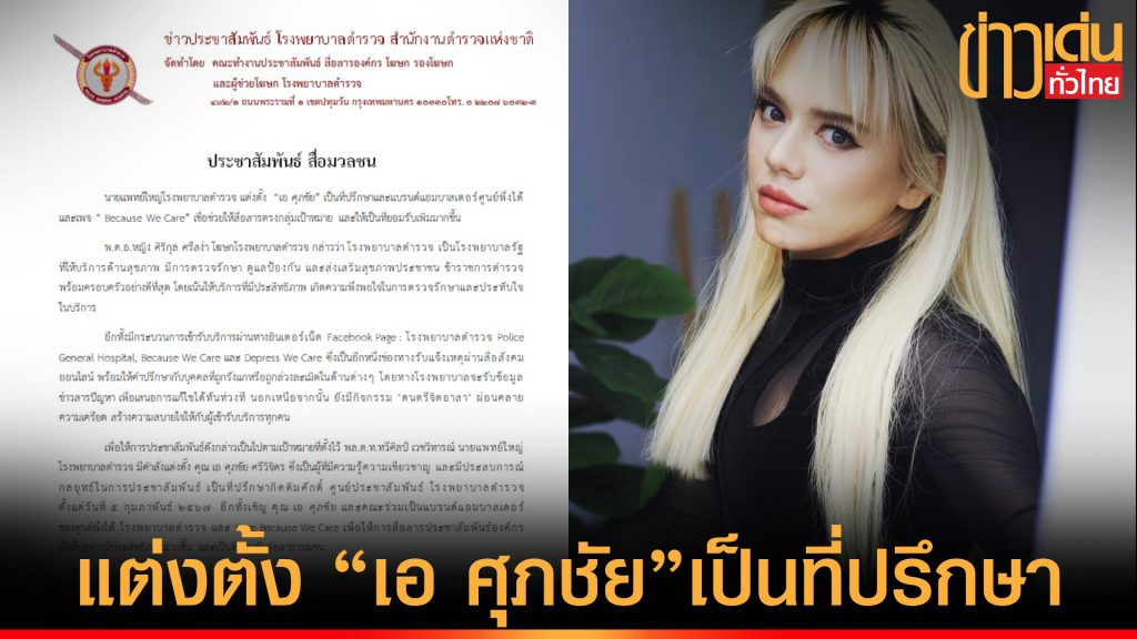 นายแพทย์ใหญ่โรงพยาบาลตำรวจ แต่งตั้ง“เอ ศุภชัย”เป็นที่ปรึกษาและแบรนด์แอมบาสเดอร์ศูนย์พึ่งได้ และเพจ “ Because We Care” ช่วยสื่อสารตรงกลุ่มเป้าหมาย