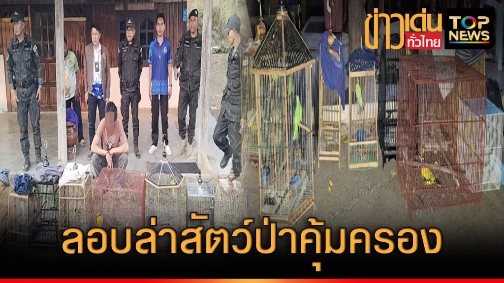 รวบหนุ่มใหญ่ ลอบล่าสัตว์ในเขตรักษาพันธุ์สัตว์ป่าสลักพระ พบนกที่เป็นสัตว์ป่าคุ้มครองเพียบ