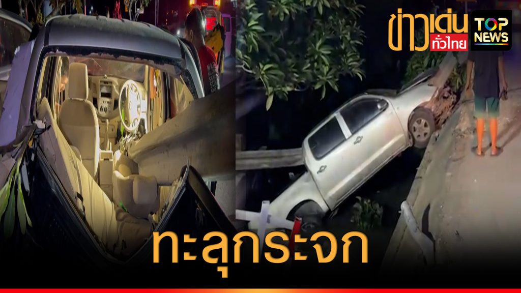 หนุ่มซิ่งปิกอัพพลาดพุ่งตกคลอง เหล็กเสียบทะลุกระจก คนขับกระเด็นออกจากรถ