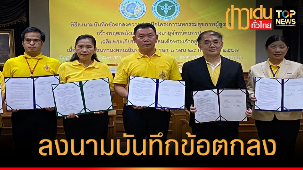 อบจ.นครปฐม ร่วมกับหน่วยงานภาครัฐภาคเอกชนและเครือข่ายชมรมผู้สูงอายุทั้ง 7 อำเภอ ลงนามบันทึกข้อตกลงโครงการมหกรรมสุขภาพผู้สูงอายุ