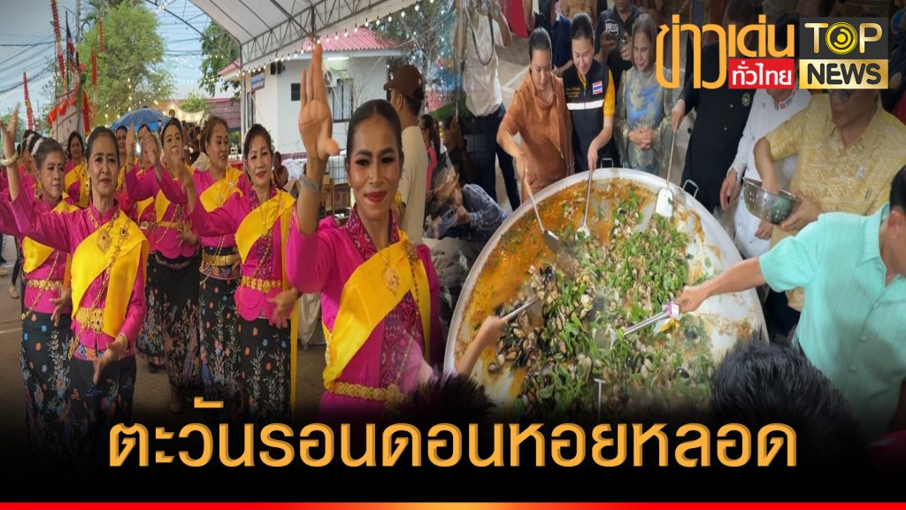 สมุทรสงครามงานตะวันรอนดอนหอยหลอดโชว์ผัดฉ่า 5 หอยกระทะยักษ์แห่งดอนหอยหลอด