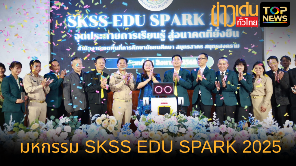 วันที่ 4 สิงหาคม 2568 ว่าที่ร้อยตรี ธนุ วงษ์จินดา เลขาธิการคณะกรรมการการศึกษาขั้นพื้นฐาน (เลขาธิการ กพฐ.) มอบหมายให้ นางเกศทิพย์ ศุภวานิช รองเลขาธิการคณะกรรมการการศึกษาขั้นพื้นฐาน (รองเลขาธิการ กพฐ.) เป็นประธานในพิธีเปิดมหกรรมเวทีแลกเปลี่ยนเรียนรู้ (SYMPOSIUM) “จุดประกายการเรียนรู้ สู่อนาคตที่ยั่งยืน : SKSS Edu Spark 2025” ประจำปีงบประมาณ 2568 โดยมี นายมิน ประจวบวัน ผู้อำนวยการสำนักงานเขตพื้นที่การศึกษามัธยมศึกษาสมุทรสาคร สมุทรสงคราม เป็นผู้กล่าวรายงาน พร้อมด้วย นายอุดม ไกรวัฒนุสรณ์ นายกองค์การบริหารส่วนจังหวัดสมุทรสาคร คณะกรรมการติดตาม ตรวจสอบ ประเมินผลและนิเทศการศึกษา (ก.ต.ป.น.) ผู้บริหารสถานศึกษา คณะครูและบุคลากรทางการศึกษา นักเรียน และผู้เกี่ยวข้อง เข้าร่วมงาน ณ อาคาร 90 ปี โรงเรียนสมุทรสาครวิทยาลัย จังหวัดสมุทรสาคร