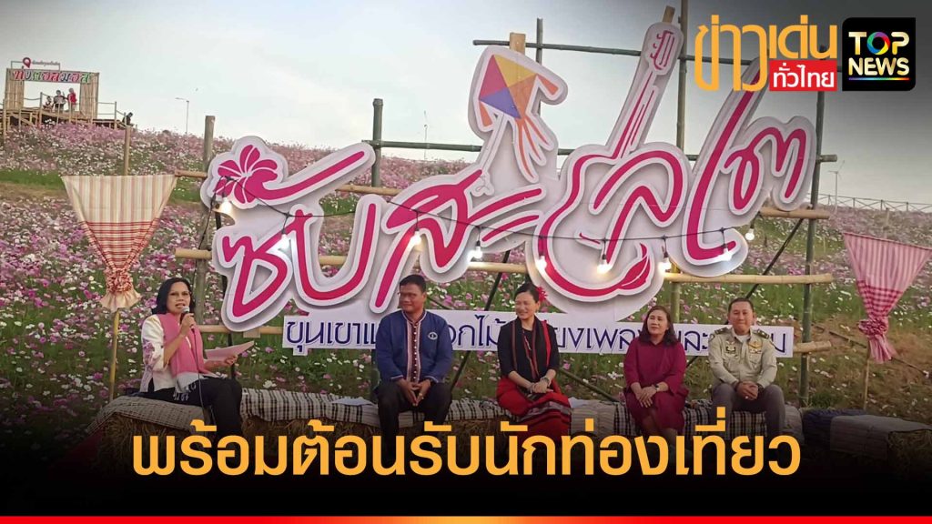 ผู้สื่อข่าวรายงานว่า เมื่อวันนี้ (25 ธ.ค.67) เวลา 17.00 น.ที่ผ่านมา นางสาวอรอาภา โล่ห์วีระ รองผู้ว่าราชการจังหวัดชัยภูมิ เป็นประธานในพิธีแถลงข่าวเปิดการจัดกิจกรรมส่งเสริมการท่องเที่ยวฤดูหนาวอำเภอเทพสถิต ประจำปี 2567 โดยนายวรวิทย์ นามมหานวล นายอำเภอเทพสถิตนางรุ่งทิพย์ บุกขุนทด ผู้อำนวยการการท่องเที่ยวแห่งประเทศไทย สำนักงานนครราชสีมา นายสมศักดิ์ กาญจนคช หัวหน้าอุทยานแห่งชาติป่าหินงาม และ นางธิดารัตน์ อากรตน ประชาสัมพันธ์จังหวัดชัยภูมิ ร่วมแถลงข่าวฯและเปิดทุ่งคอสมอสและดอกไม้นานาชนิดที่ซับสะเลเต บ้านหนองใหญ่ ตำบล.บ้านไร่ อ.เทพสถิต จ.ชัยภูมิ บนพื้นที่กว่า 30 ไร่ ที่ทางอำเภอเทพสถิตได้ร่วมกันเนรมิตขึ้มาเพื่อให้เป้นแหล่งท่องเที่ยวประจำจังหวัดอีกแห่งหนึ่งเพื่อต้อนรับนักท่องเที่ยวในช่วงเทศกาลปีใหม่นี้ โดยจังหวัดชัยภูมิได้มีการส่งเสริมการท่องเที่ยวให้ได้ทั้ง 3 ฤดู ซึ่งทุ่งอกไม้ ที่ ซับสะเลเต แห่งนี้ ตั้งอยู่ใกล้อุทยานแห่งชาติป่าหินงาม และสถานที่เที่ยวอีกหลายอย่างมาแล้วไม่ผิดหวังอย่างแน่นอน