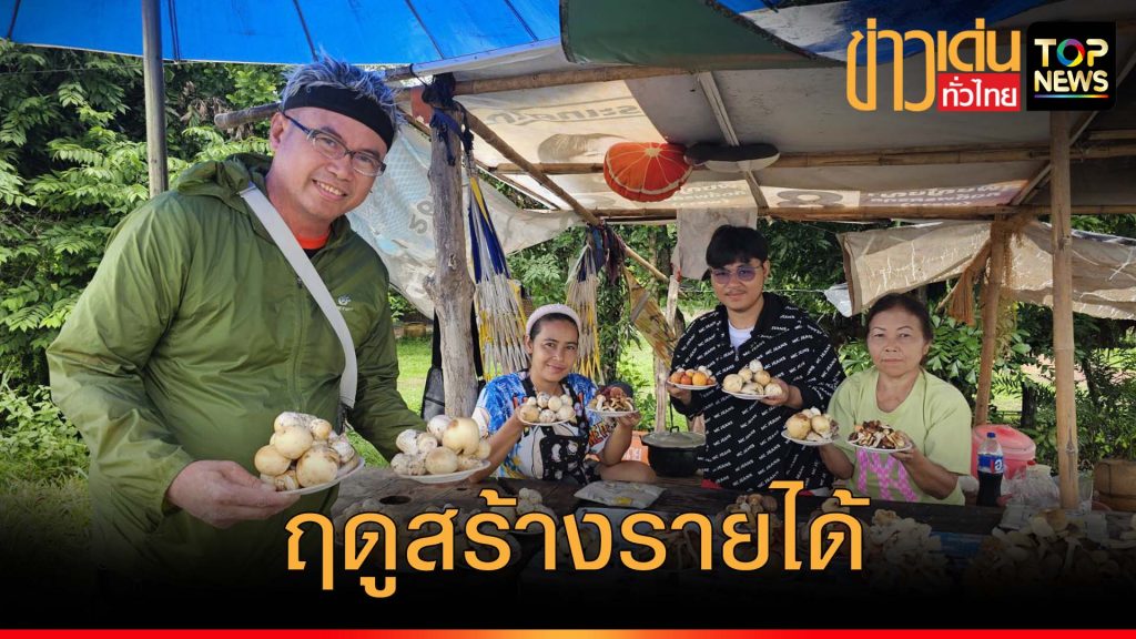 นครพนม ฝนตกชุกสลับร้อนอบอ้าว ตลาดเห็ดป่าคึกคัก เห็ดระโงกมาแรงราคาพุ่งกิโลกรัมละ 300 – 400 บาท หาทั้งฤดู สร้างรายได้เฉียดแสน
