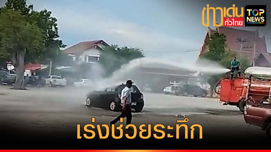 เจ้าหน้าที่เร่งช่วยระทึก เพลิงไหม้รถเก๋งกลางลานจอดรถ คาดน้ำมันรั้วไฟช็อด