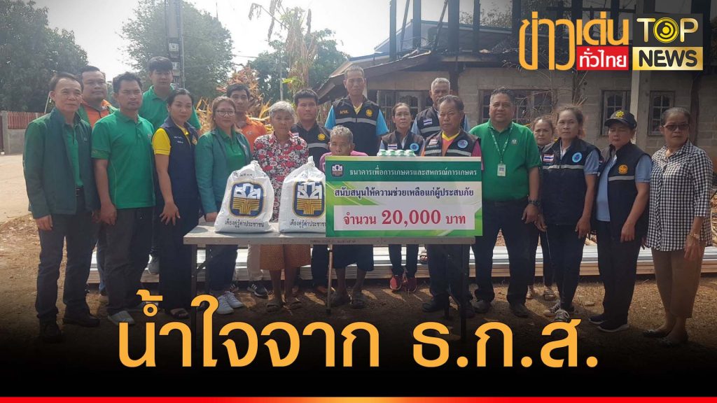 สุดตื้นตัน 2 ตา-ยาย เหยื่อหลานชายคลั่งเผาบ้าน เงินสะสมจ่ายหนี้วอด ธ.ก.ส.ห่วงใยมอบเงิน 20,000 ช่วยสร้างบ้านใหม่