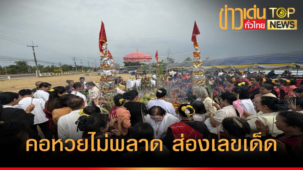 คอหวยแห่ส่องเลขเด็ดหางประทัด พิธียกเสาเอกศาลหลักเมืองศรีรัตนะ ทำเอาแผงสลากขายเกลี้ยงในพริบตา