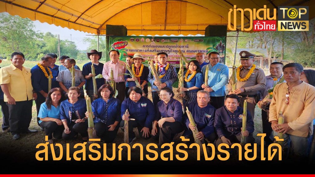 ที่บริเวณด้านหน้าเรือนจำกลางจังหวัดนครพนม และแปลงปลูกต้นกล้วยตานี คณะเกษตรศาสตร์และเทคโนโลยี มหาวิทยาลัยนครพนม ตำบลขามเฒ่า อำเภอเมืองนครพนม จังหวัดนครพนม นายวันชัย จันทร์พร ผู้ว่าราชการจังหวัดนครพนม ส่งมอบหน่อกล้วยตานี ตามแนวทางส่งเสริมเศรษฐกิจชุมชน คนนครพนม “จากใบตองกล้วยธรรมดา สู่ มูลค่าเพิ่มทางเศรษฐกิจ” ต้นเงิน (ATM) ข้างบ้านต้นบำนาญในสวน โดยดำเนินการส่งมอบหน่อกล้วยตานี ให้กับเรือนจำกลางนครพนมและคณะเกษตรและเทคโนโลยีมหาวิทยาลัยนครพนม เพื่อเป็นแปลงสาธิตและเป็นแปลงขยายหน่อกล้วยตานี สำหรับใช้ในการขยายพันธุ์ และผลิตหน่อกล้วยตานี ให้กับประชาชนที่มีความต้องการในพื้นที่จังหวัดนครพนม ภายใต้แนวทางการส่งเสริมรายได้ให้กับประชาชนในพื้นที่จังหวัดนครพนม ซึ่งจังหวัดนครพนม มีการผลิตและแปรรูปผลิตภัณฑ์ ที่ใช้บรรจุภัณฑ์จากใบกล้วยตานี เช่น หมูยอ ธุรกิจแหนม การห่อข้าวต้มมัด การทำพานบายศรี ขันหมากเบ็ง เศียรพญานาค บูชาองค์พระธาตุพนม และพระธาตุสำคัญประจำวันเกิด ทั้ง 7 พระธาตุในจังหวัดนครพนม รวมถึงการทำพานบายศรีบูชาพญาศรีสัตตนาคราช ให้นักท่องเที่ยวที่มาเยือนจังหวัดนครพนม ที่มีแนวโน้มเพิ่มขึ้นทุกปี