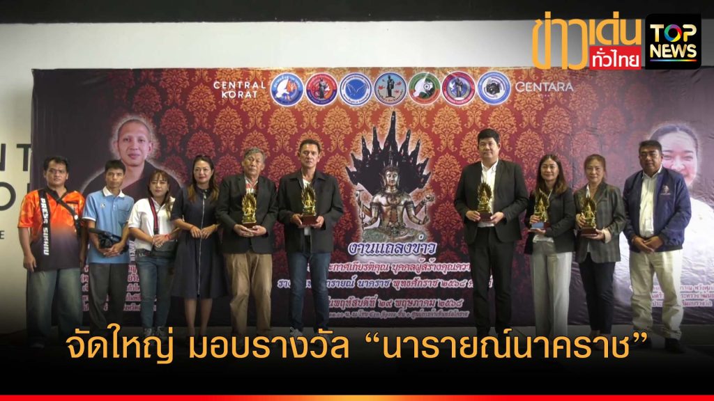 วันที่ 29 พฤษภาคม 2568 เวลา 13.00 น . ที่โซนเซ็นสเปช ชั้น 1 ห้างสรรพสินค้าเซ็นทรัลโคราช นายณัฐพงศ์ อรชร นายกสมาคมผู้สื่อข่าวจังหวัดนครราชสีมา และภาคีเครือข่าย อาทิ สมาคมสื่อสารมวลชน สมาคมสื่อสารภูมิภาคจังหวัดชุมพร ชมรมผู้สื่อข่าวจังหวัดนครราชสีมา ชมรมนักข่าวหนังสือพิมพ์ทีวีสื่อออนไลน์ประเทศไทย ชมรมนักข่าวสื่อมวลชนจังหวัดนครราชสีมา ชมรมนักข่าวพันธมิตรจังหวัดนครราชสีมา และภาคีเครือข่าย พร้อมด้วย คุณประคัลภ์ ศรีจุฑารัตน์ ผู้จัดการแผนกการตลาด ศูนย์การค้าเซ็นทรัล โคราช คุณทิพย์ณิดา ฟุ้งศิริกาญจน์ ผู้อำนวยการฝ่ายขาย โรงแรมเซ็นทารา โคราช ร่วมแถลงข่าวการจัดงานมอบรางวัล “นารายณ์นาคราช” ประจำปี 2568