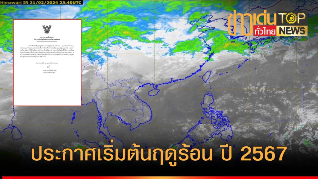 วันที่ 22 กุมภาพันธ์ 2567 กรมอุตุนิยมวิทยา ได้ออกประกาศเริ่มต้นฤดูร้อน ปี พ.ศ. 2567 ประเทศไทยได้สิ้นสุดฤดูหนาวและเข้าสู่ฤดูร้อนแล้ว ในวันที่ 21 กุมภาพันธ์ พ.ศ.2567 โดยในตอนกลางวันบริเวณประเทศไทยมีอากาศร้อนเกือบทั่วไปต่อเนื่อง อุณหภูมิสูงสุดมากกว่า 35 องศาเซลเซียส เนื่องจากได้รับอิทธิพลจากรังสีดวงอาทิตย์เพิ่มมากขึ้น ประกอบกับมีลมฝ่ายใต้พัดปกคลุมบริเวณประเทศไทยตอนบน ซึ่งเป็นรูปแบบลักษณะอากาศของฤดูร้อน อย่างไรก็ตามบริเวณภาคเหนือและภาคตะวันออกเฉียงเหนือจะยังคงมีอากาศเย็นในตอนเช้าจนถึงประมาณกลางเดือนมีนาคม และคาดว่า ฤดูร้อน จะสิ้นสุดประมาณกลางเดือนพฤษภาคม พ.ศ. 2567