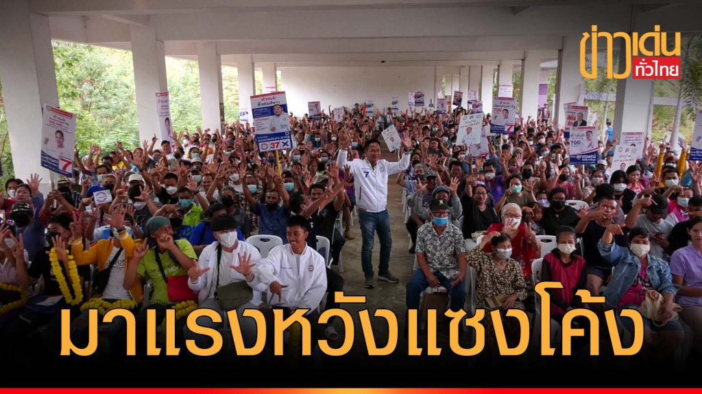 ชาวบ้านแห่ให้กำลัง “อิทธิพล กำลังหาญ” ผู้สมัคร ส.ส. เขต 4 พปชร. เบอร์ 9 ที่ศูนย์ประสานงานพรรคสาขาแน่น