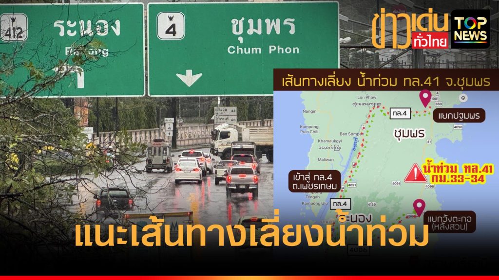 แนะเส้นทางเลี่ยง ขึ้นลงใต้สามารถใช้เส้นทางระนองแทนได้