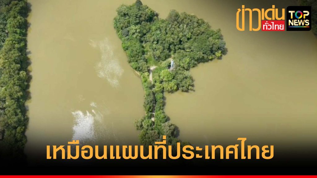 สระน้ำขนาดใหญ่พื้นที่เมืองตรัง ดูจากภาพมุมสูงคล้ายรูปแผนที่ประเทศไทย