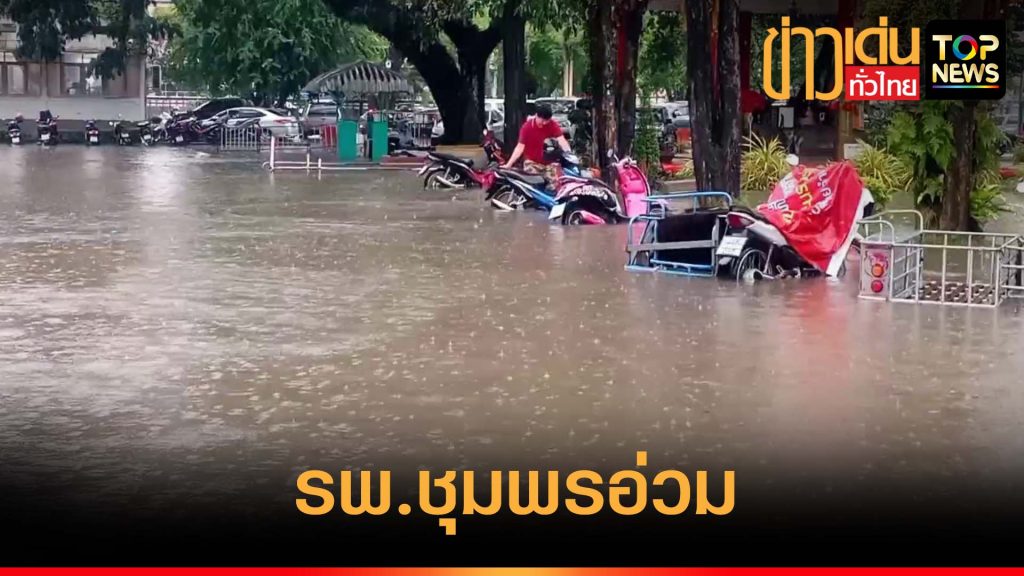 ฝนถล่มน้ำท่วมหน้าโรงพยาบาลชุมพรรถติดหนัก