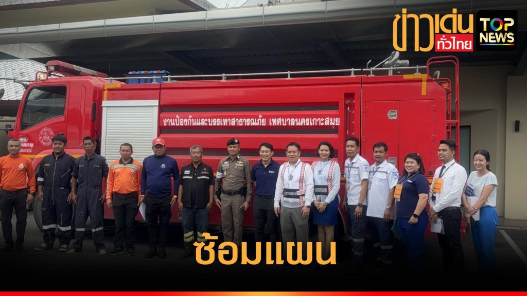 วันที่ 10 ต.ค. 2567 ผู้สื่อข่าวรายงานว่า ที่ลานอเนกประสงค์ ลานจอดรถ จุดรวมพล โรงพยาบาลกรุงเทพสมุย นายแพทย์กฤตนุ ฝูงทองเจริญ ผู้ช่วยผู้อำนวยการโรงพยาบาลกรุงเทพสมุย ร.ต.อ.โสภณ มากสุวรรณ รองสารวัตรจราจร สถานีตำรวจภูธรบ่อผุด และ เจ้าหน้าที่ดับเพลิงจากเทศบาลนครเกาะสมุย พร้อมบุคคลากร โรงพยาบาลกรุงเทพสมุย ได้ร่วมกันฝึกซักซ้อมแผนเผชิญเหตุ โดยสมมุติเหตุการณ์ ไฟไหม้ และ พบกลุ่มควันขึ้นภายในโรพยาบาลทันที ที่เกิดเหตุ พบกลุ่มควัน ทางเจ้าหน้าที่ จึงได้เเจ้งเตือน พร้อมประสานขอความช่วยเหลือ และ ทำการ อพพยผู้ป่วย ที่พักรักษาตัว ทำการเคลื่อนย้ายคนป่วย ออกมายังลานจุดรวมพล และระดมรถพยาบาล รีเฟอร์ผู้ป่วยไปยังโรงพยาบาลใกล้เคียง และประสานโรงพยาบาลต่างๆมาช่วยลำเลียงผู้ป่วย และประสานเเจ้งเหตุขอความช่วยเหลือไปยังสถานีดับเพลิงเทศบาลนครเกาะสมุย และเเจ้งเหตุให้เจ้าหน้าที่ตำรวจทราบ