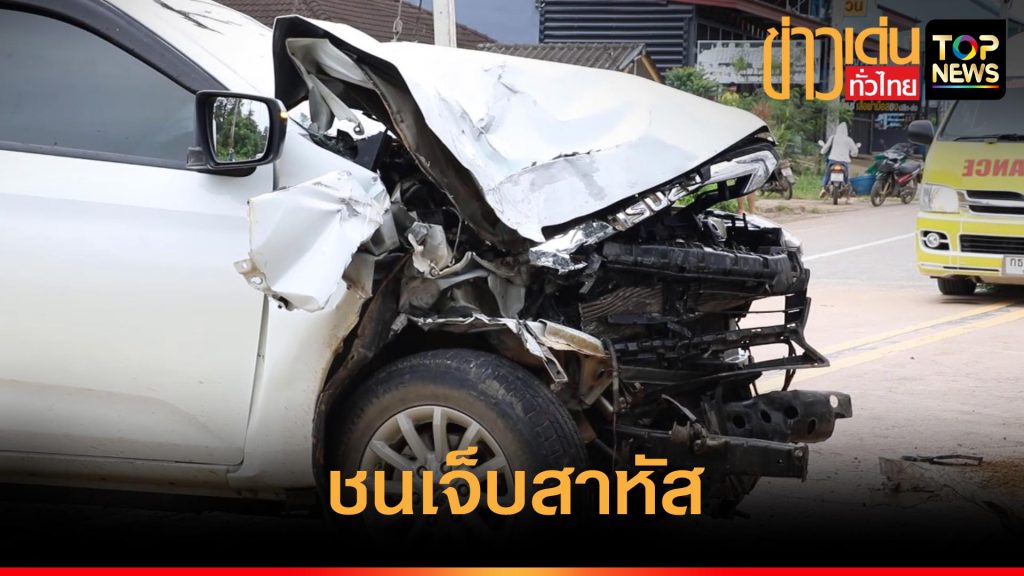 หนุ่มขับกระบะหักหลบ จยย.ข้ามเลนชนรถบรรทุก 6 ล้อเจ็บสาหัส