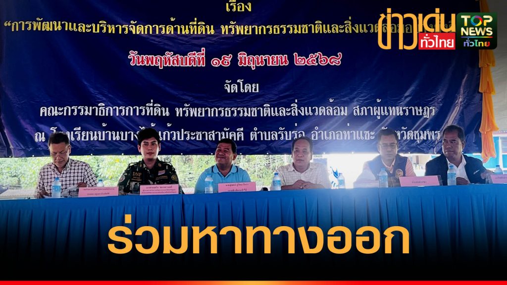 วันที่ 19 มิ.ย. 2568 ที่โรงเรียนบ้านบางไม้แก้วประชาสามัคคี ต.รับร่อ อ.ท่าแซะ จ.ชุมพร คณะคณะกรรมาธิการที่ดินธรรมชาติและสิ่งแวดล้อมสภาผู้แทนราษฎร เดินทางลงพื้นที่เพื่อสัมมนา “การพัฒนาและบริหารจัดการด้านที่ดิน ทรัพยากรธรรมชาติ และสิ่งแวดล้อมอย่างยั่งยืน ประกอบด้วย นายสันต์ แซ่ตั้ง สส.ชุมพร เขต 2 พรรครวมไทยสร้างชาติ รองประธานกรรมาธิการฯคนที่ 4 นายสุพจน์ ภู่รัตนาโอภา รองอธิบดีกรมป่าไม้ นางสายสุดใจ ชนาเชาวฤทธิ์ ผอ.สำนักทรัพยากรธรรมชาติจังหวัดชุมพร สำนักงานทรัพยากรธรรมชาติและสิ่งแวดล้อมจังหวัดชุมพร แทนผู้ว่าราชการจังหวัดชุมพร นายธนานันท์ พุทธนวล ผู้แทนกรมอุทยานแห่งชาติสัตว์ป่าและพันธุ์พืช นายลิขิต สุขเยาว์ ปลัดอำเภอหัวหน้ากลุ่มงานบริหารงานปกครอง นายสามารถ เจียวยี การไฟฟ้าส่วนภูมิภาคจังหวัดชุมพร และนายกฤษ แก้วรักษ์ รอง นายก อบจ.ชุมพร