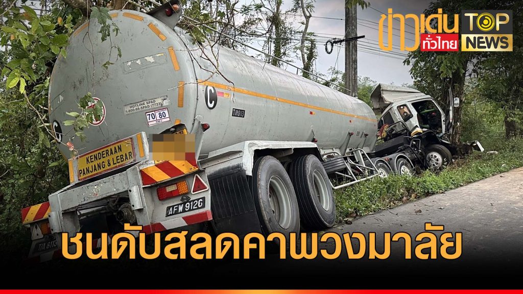 คนขับรถพ่วง 18 ล้อ บรรทุกน้ำยางพาราหลับใน เสียหลักพุ่งชนต้นไม้ดับสลด