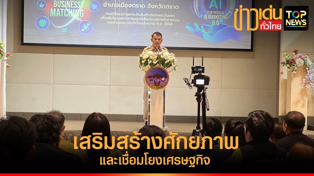 จังหวัดตราดเปิดกิจกรรมเสริมสร้างศักยภาพและเชื่อมโยงเศรษฐกิจระเบียงเศรษฐกิจภาคตะวันออกสู่นานาชาติ เชื่อมโยงการค้าชายแดน และติดอาวุธทางเทคโนโลยี่Ai ให้ผู้ประกอบการธุรกิจสร้างมูลค่าการค้าทั้งไทยและเทศ