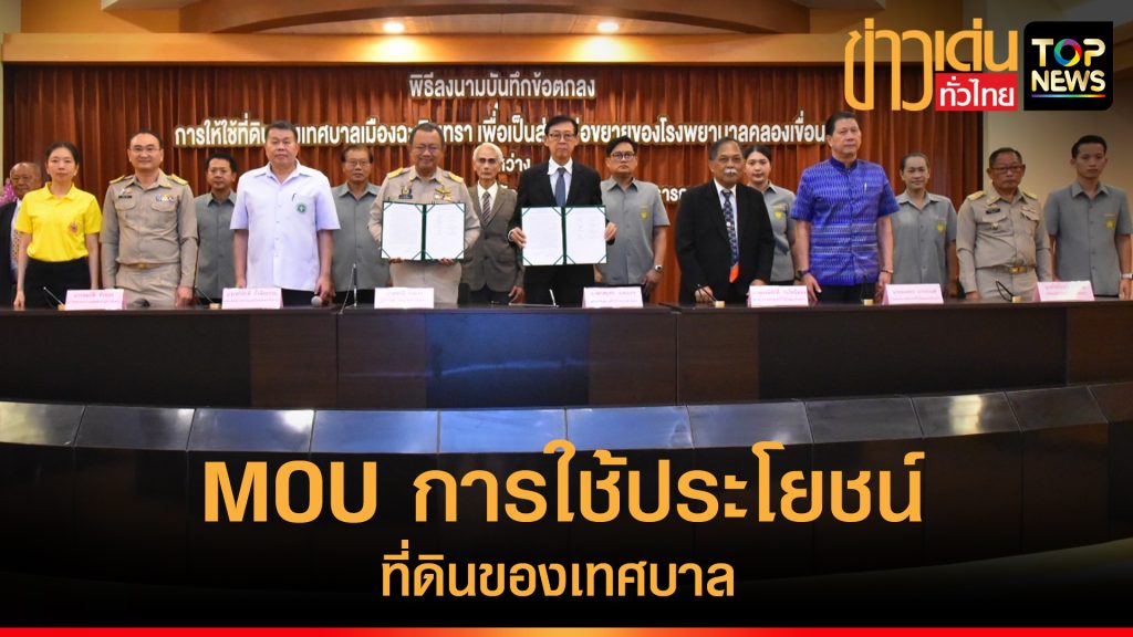 วันนี้ 20 ส.ค.67 ที่ห้องประชุมสภาเทศบาลเมืองฉะเชิงเทรา นายชลธี ยังตรง ผู้ว่าราชการจังหวัดฉะเชิงเทรา พร้อมด้วย นายกลยุทธ ฉายแสง นายกเทศมนตรีเมืองฉะเชิงเทรา นายศรีศักดิ์ ตั้งจิตธรรม นายแพทย์สาธารณสุขจังหวัดฉะเชิงเทรา นายพงษ์ศักดิ์ ร่มโพธิ์ทอง นายพงศธร ถาวรวงศ์ รองนายกเทศมนตรีเมืองฉะเชิงเทรา นายไพโรจน์ รังสินธุ์ ปลัดเทศบาลเมืองฉะเชิงเทรา นายสมบัติ ทั่งทอง นักวิชาการสาธารณสุขชำนาญการพิเศษ รักษาการในตำแหน่งนักวิชาการสาธารณสุขเชี่ยวชาญ และ นางสาววิพัชรินทร์ ทรงเดชาพิพัฒน์ ผู้อำนวยการโรงพยาบาลคลองเขื่อน ร่วมลงนามบันทึกข้อตกลงการใช้ประโยชน์ในที่ดินของเทศบาลเมืองฉะเชิงเทรา โฉนดเลขที่ 6832 ตามที่ เทศบาลเมืองฉะเชิงเทรา ได้อนุญาตให้สำนักงานปลัดกระทรวงสาธารณสุข ใช้ประโยชน์ในที่ดินซึ่งเป็นทรัพย์สินของเทศบาลเมืองฉะเชิงเทรา โฉนดเลขที่ 6832 เลขที่ดิน 65 ตำบลคลองเขื่อน อำเภอบางคล้า จังหวัดฉะเชิงเทรา เนื้อที่ 17 ไร่ 60 ตารางวา เพื่อเป็นที่ตั้งหอผู้ป่วยเพื่อการดูแลระยะทางกลางของโรงพยาบาลคลองเขื่อน และส่วนที่เหลือจากการก่อสร้างอาคารจะนำมาใช้สร้างสวนสมุนไพร ลานออกกำลังกายและศูนย์ดูแลสุขภาพผู้สูงอายุ ในฐานะผู้รับมอบอำนาจจากปลัดกระทรวงสาธารณสุข […]