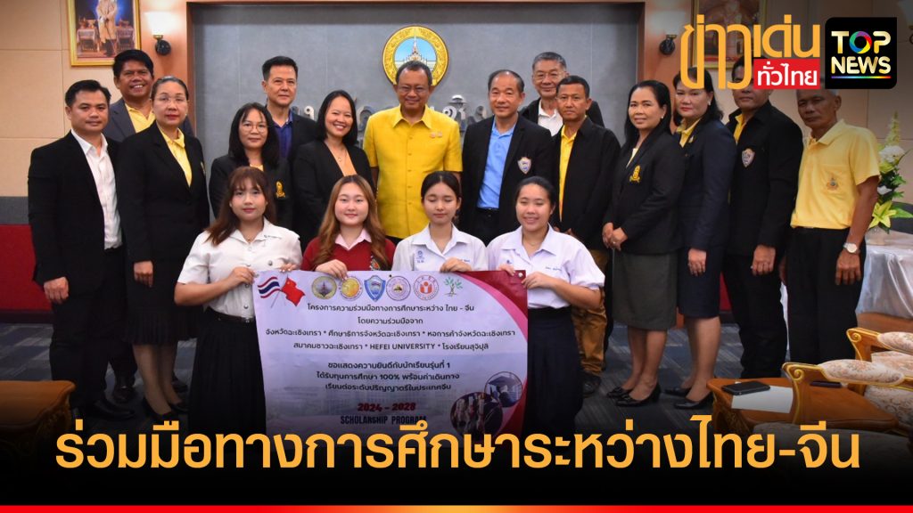 วันที่ 19 สิงหาคม 2567 ที่ห้องปฏิบัติราชการผู้ว่าราชการจังหวัดฉะเชิงเทรา นายจิตรกร เผด็จศึก ประธานหอการค้าจังหวัดฉะเชิงเทรา นำคณะเจ้าหน้าที่และนักเรียนทุน ตามโครงการความร่วมมือทางการศึกษาระหว่างไทย-จีน เข้าพบ นายชลธี ยังตรง ผู้ว่าราชการจังหวัดฉะเชิงเทรา เพื่อขอพรก่อนเดินทางไปศึกษาต่อ ที่มหาวิทยาลัย Hefei ประเทศจีน โครงการความร่วมมือทางการศึกษาระหว่างไทย-จีน เกิดจากความร่วมมือระหว่างหอการค้าจังหวัดฉะเชิงเทรา และมหาวิทยาลัย Hefei ประเทศจีน โดยมีเป้าหมายในการพัฒนาศักยภาพของนักเรียนในด้านวิชาการและวัฒนธรรมจีน พัฒนาศักยภาพของนักเรียนไทยในด้านวิชาการและภาษาต่างประเทศ รวมถึงส่งเสริมการแลกเปลี่ยนวัฒนธรรมระหว่างประเทศไทยและจีน เพื่อสนับสนุนโอกาสทางการศึกษาให้กับนักเรียนในจังหวัดฉะเชิงเทรา โดยมอบทุนการศึกษาระดับปริญญาตรี ให้ศึกษาต่อ ณ มหาวิทยาลัย Hefei ประเทศจีน ในปีการศึกษา 2567 โดยได้รับความร่วมมือจากศึกษาธิการจังหวัดฉะเชิงเทรา สมาคมชาวฉะเชิงเทรา มหาวิทยาลัย Hefei ประเทศจีน และโรงเรียนสุจิปุลิ เป็นผู้ร่วมประสานงานและรับสมัครคัดเลือกนักเรียนที่มีภูมิลำเนาอยู่ในจังหวัดฉะเชิงเทรา และมีคุณสมบัติตามที่กำหนด ซึ่งมีนักเรียนที่ผ่านการคัดเลือกให้ได้รับทุนการศึกษา รุ่นที่ 1 ระหว่างปีการศึกษา 2567 – 2571 มีจำนวน 4 คน