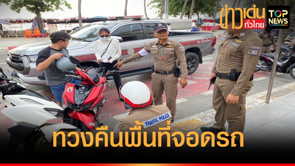 ตร.พัทยา ทวงคืนพื้นที่จอดรถชายหาดพัทยา จับรถเช่าจอดกั๊ก-ทับเส้นขาวแดง