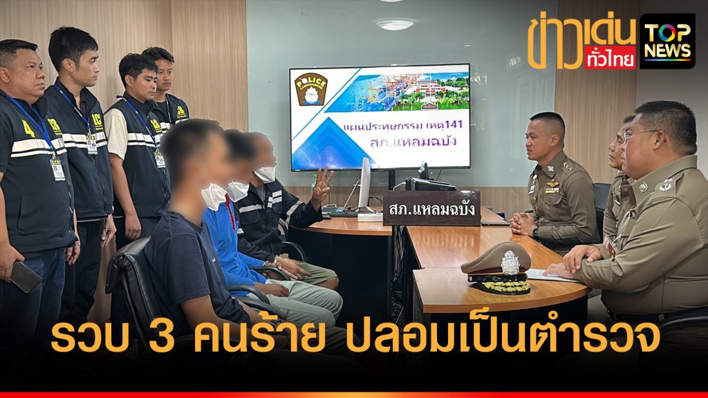 ตำรวจแหลมฉบัง ตามรวบ 3 คนร้าย ปลอมเป็นตำรวจ ปล้นทรัพย์ชาวบ้าน สารภาพเคยเป็นอาสาตำรวจ จึงรู้ช่องทางก่อเหตุ โดยก่อเหตุลักษณะนี้มาแล้ว 6-7 ครั้ง