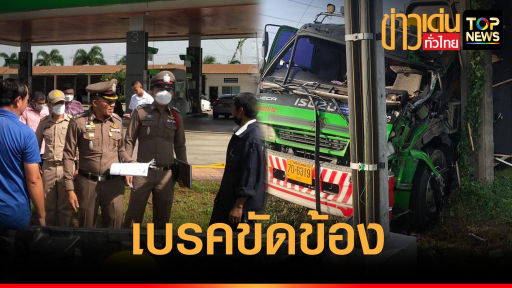 ระทึก รถบรรทุกสารเคมีเบรคขัดข้องหวิดชนเสาไฟฟ้าแรงสูงหน้าปั๊มน้ำมัน