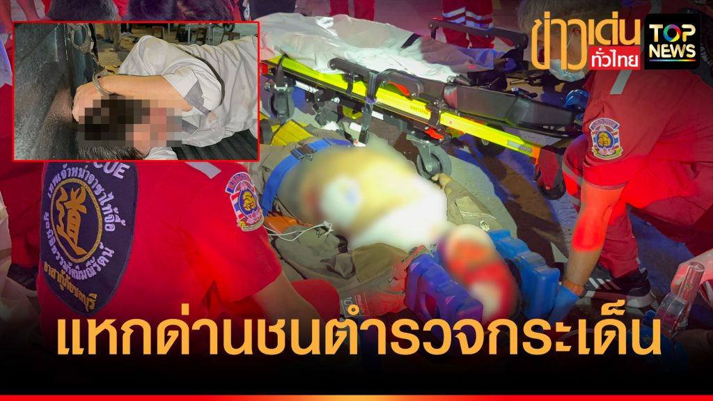 หนุ่มเมาซิ่งเก๋งแหกด่านชนตำรวจกระเด็นกว่า 100 เมตร อาการโคม่า จับเป่าพบ ปริมาณแอลกอฮอล์สูงถึง 158 มิลลิกรัมเปอร์เซ็นต์
