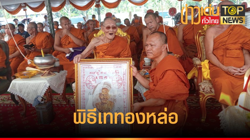 เจ้าคณะภาค13 ประธานพิธีเททองหล่อพระบาทและฐานจตุรทิศ ท้าวเวสสุวรรณ (ท่านทองล้น-ปางปาฏิหารย์) วัดเขาช่องลม ความสูง 13.99 เมตร เนื้อทองเหลืองสูงที่สุดในประเทศไทย