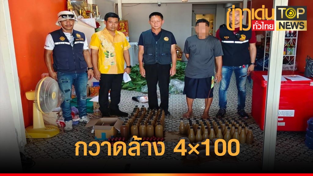 นอภ.สัตหีบ นำกำลังกวาดล้าง บุกจับกุมร้านขายน้ำกระท่อม 4×100 มอมเมาเยาวชน ยึดน้ำท่อมยาแก้ไอบาน