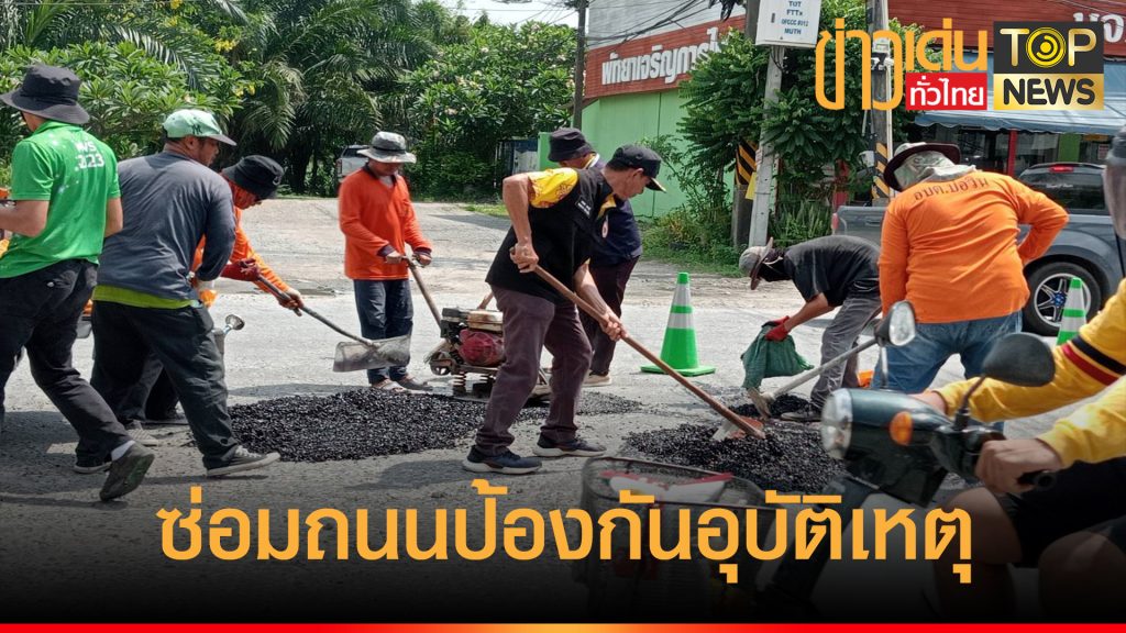 อบต.บ่อวินซ่อมถนนเพื่อบรรเทาความเดือดรัอนและป้องกันอุบัติเหตุ