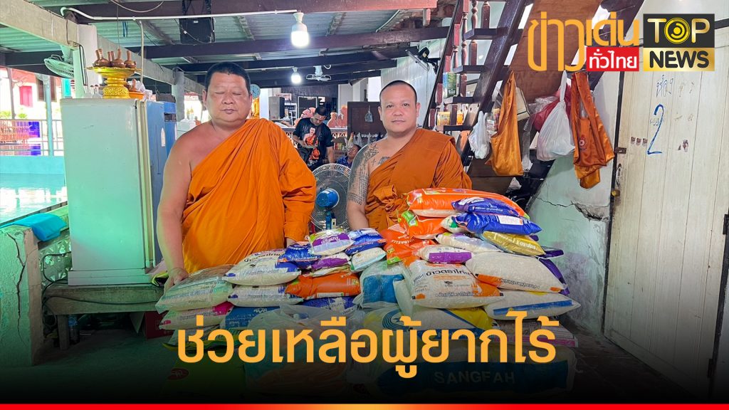พระอาจารย์เอ้ วัดดอนทองมอบข้าวสารให้กับพระครูป้อม เจ้าอาวาสวัดวรพรตสังฆวาสเพื่อช่วยเหลือผู้ยากไร้และผู้ป่วยติดเตียงในพื้นที่ห่างไกล จ.ลพบุรี