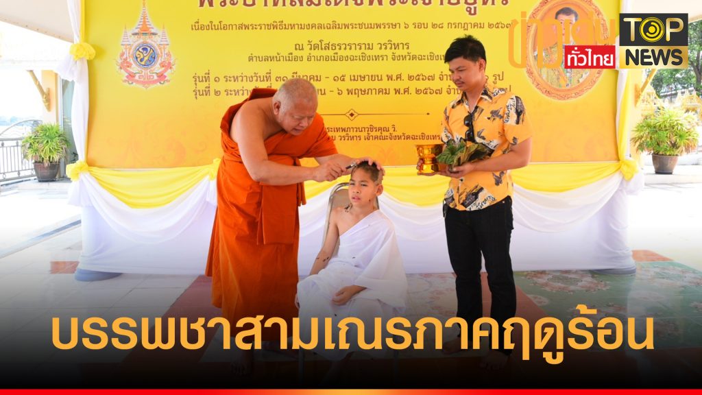 จังหวัดฉะเชิงเทรา ร่วมกับวัดโสธรวราราม วรวิหาร จัดบรรพชาสามเณรภาคฤดูร้อน เฉลิมพระเกียรติพระบาทสมเด็จ พระเจ้าอยู่หัวฯ เนื่องในโอกาสมหามงคลเฉลิมพระชนมพรรษา 6 รอบ 28 กรกฎาคม 2567