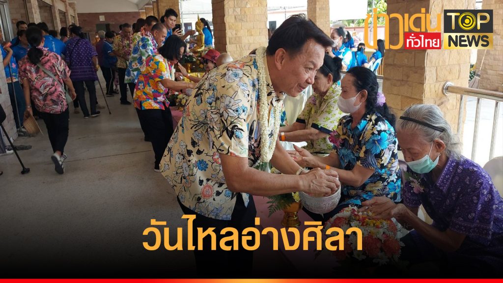 ชุมชนนิคมบ่อวินจัดประเพณีสรงน้ำพระและรดน้ำดำหัวขอพรผู้สูงอายุพร้อมทั้งแจกข้าวสาร-อาหารแห้งให้ผู้สูงอายุ