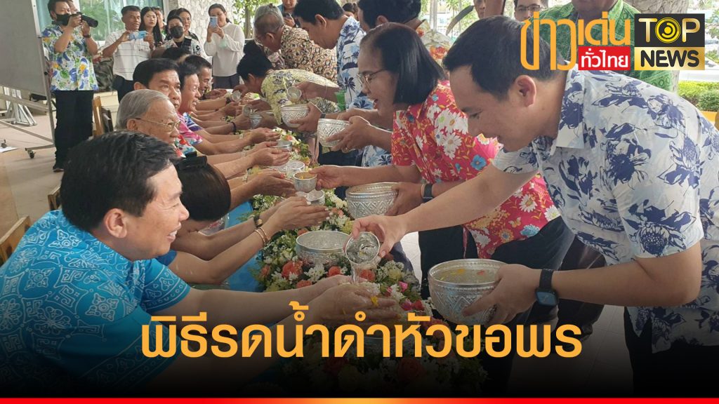 องค์การบริหารส่วนจังหวัดชลบุรีจัดพิธีสรงน้ำพระและพิธีรดน้ำดำหัวขอพรผู้บริหาร ในประเพณีสงกรานต์