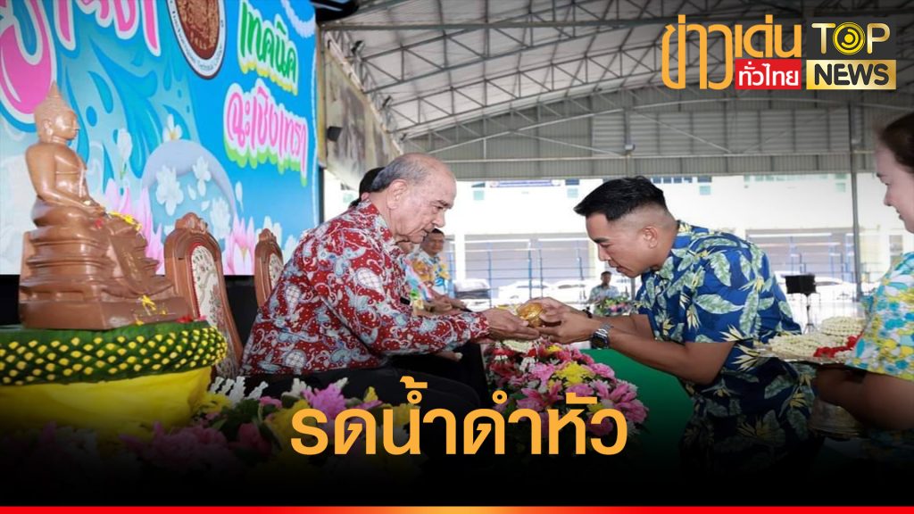 สืบสานประเพณีวัฒนธรรมช่วงเทศกาลสงกรานต์ วท.ฉะเชิงเทรา จัดพิธีรดน้ำดำหัว อดีตผู้บริหาร บรรยากาศชื่นมื่น