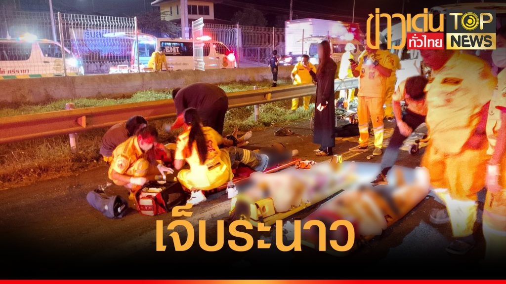 ระทึก รถตู้ถูกรถบรรทุกพ่วง 18 ล้อ เฉี่ยวเสียหลักพุ่งชนราวเหล็กกั้นทางมอเตอร์เวย์มีผู้ได้รับบาดเจ็บ6คนติดภายใน 2 คน