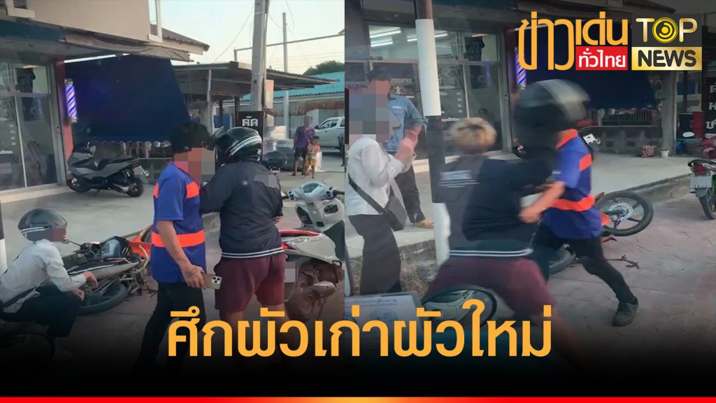 เปิดศึก ผัวเก่าขี่จยย.ตามกระทืบผัวใหม่ข้างทางชาวบ้านช่วยกันห้ามวุ่น