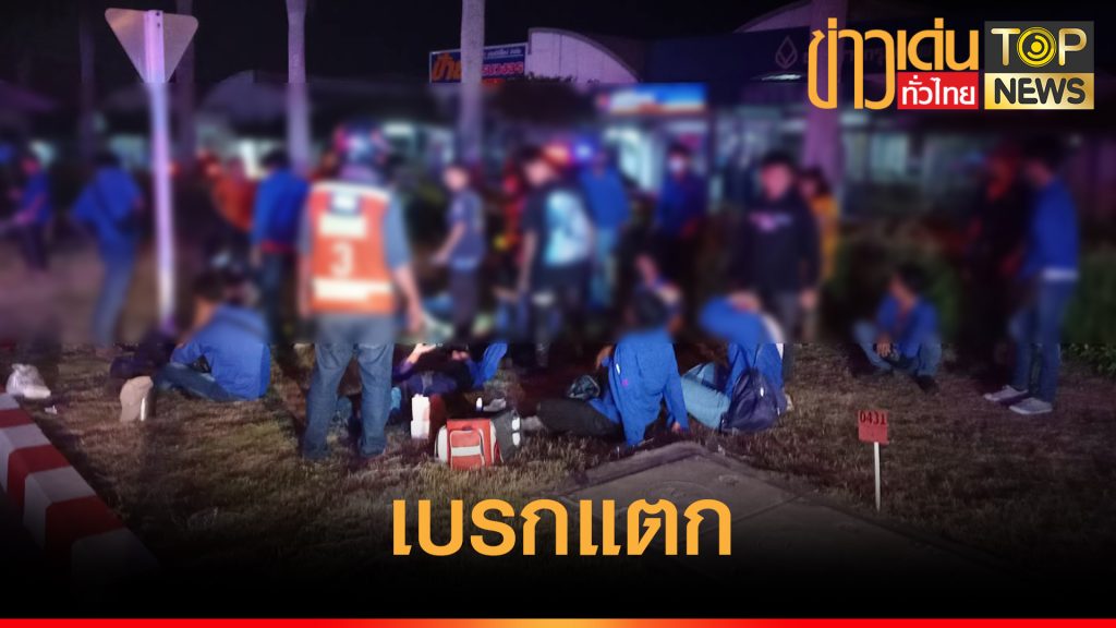 ระทึก รถ 6 ล้อ บรรทุกคนงานเบรกแตก พุ่งชนกระบะบาดเจ็บหลายราย