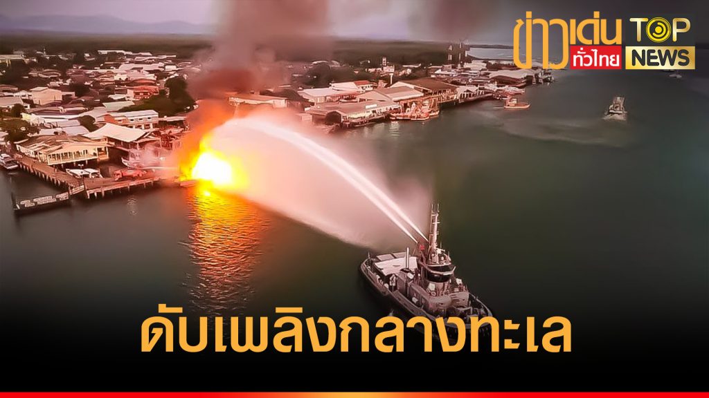 กองทัพเรือ โดย ทัพเรือภาคที่ 3 ส่งเรือหลวงหลีเป๊ะ ระดมฉีดน้ำดับเพลิงโหมลุกไหม้ “เรือทัวร์ Sea World 1″ กลางร่องน้ำทับละมุ พังงา