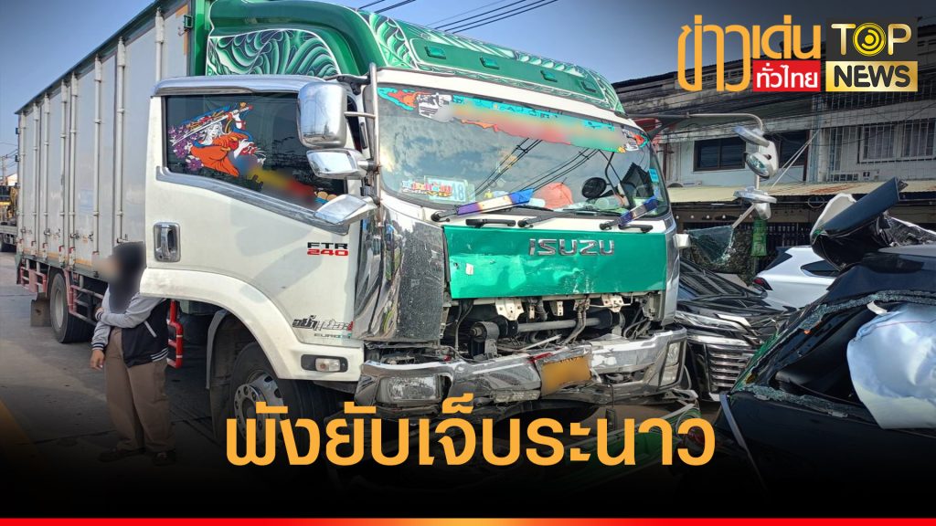 ระทึก รถบรรทุก 6 ล้อ เบรคไม่อยู่พุ่งชนรถที่ชะลอด้านหน้า พังยับ หลายคัน เจ็บหลายราย