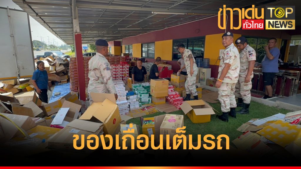 ตำรวจทางหลวง รวบรถขนส่งสินค้า พบเบียร์และบุหรี่เถื่อนเต็มคันรถ