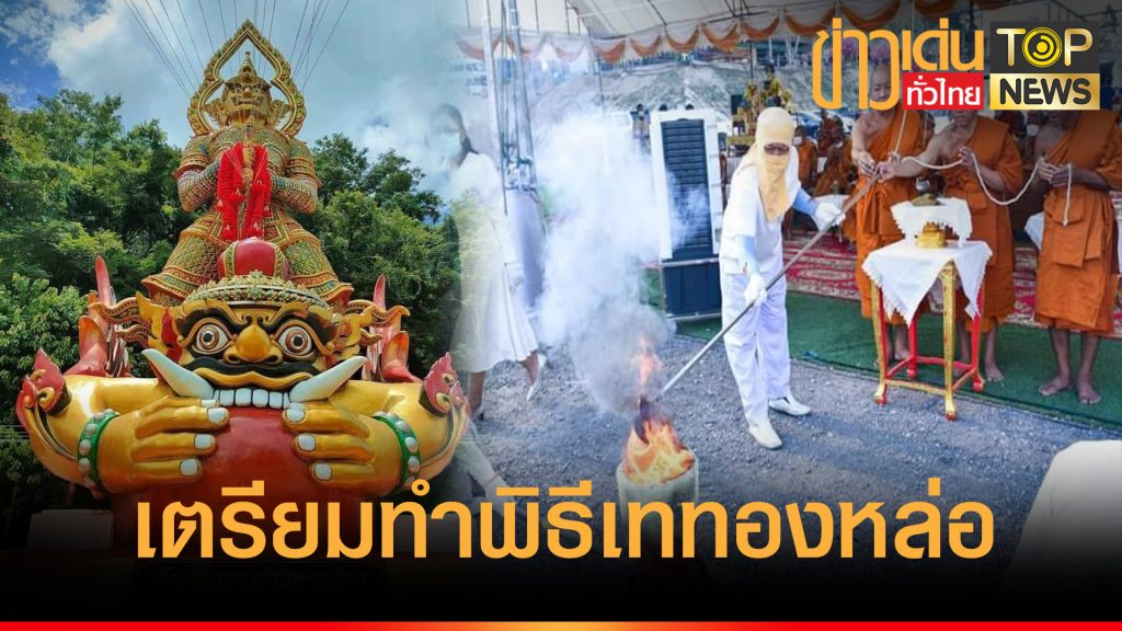 วัดเขาช่องลมเตรียมทำพิธีเททองหล่อ พระหัตถ์,ตระบอง,ผ้าชายสใบหลัง ท้าวเวสสุวรรณ (ท่านทองล้น-ปางปาฏิหารย์) ความสูง 13.99 เมตร เนื้อทองเหลืองสูงที่สุดในประเทศไทยในวาระที่ 5