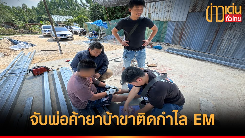 สืบสวนสัตหีบ บุกจับพ่อค้ายาบ้า ขาติดกําไล EM พร้อมของกลางจำนวนมาก